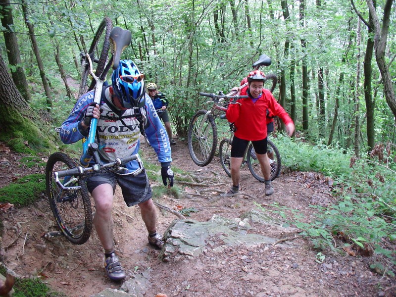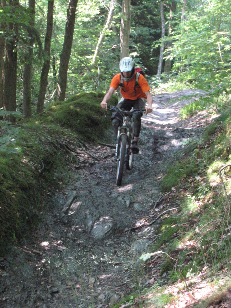 Zien jullie nu al op tegen heuvels beklimmen? Kies dan voor het downhillen. Maar denk niet dat dit niet inspannend is: downhillen houdt bij ons in op techniek en geconcentreerd naar beneden mountainbiken over bospaden. Aangezien bij ons veiligheid voorop staat, is het dus niet blind gaan als op een “freeride bikepark”. Downhillen vereist veel meer techniek dan ‘gewoon’ mountainbiken: de instructeur brengt de beginselen van deze technieken graag bij.