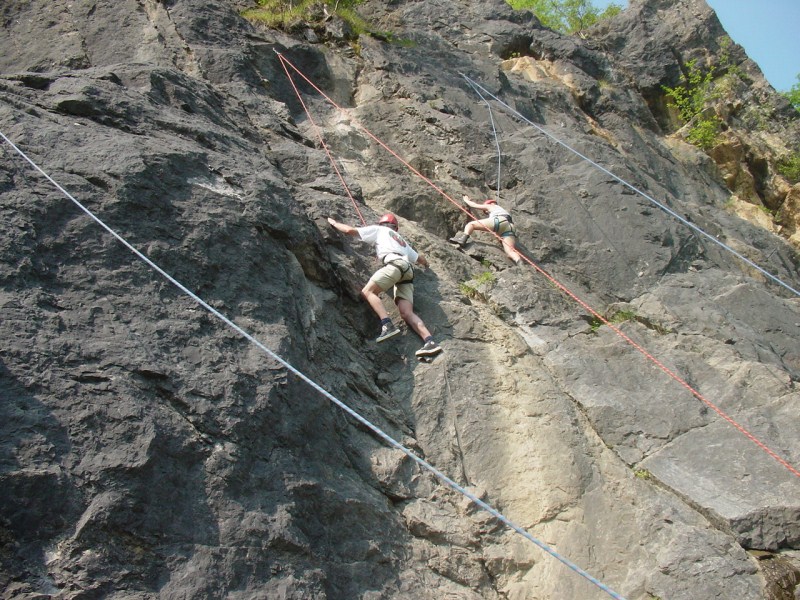 Onze klimlocatie in de omgeving van Aywaille daagt jullie uit om de top te halen! Na een uitleg over het klimmen en zekeren kunnen jullie naar hartelust de natuurlijke rotsen beklimmen. Op dezelfde locatie vindt de spectaculaire metershoge abseil plaats. Alle technieken worden besproken, maar ook teamwork, krachtmeting en vertrouwen in de ander komen aan bod. Er kan worden geklommen in verschillende moeilijkheidsgradaties, zodat ieder in principe deel kan nemen aan deze activiteit! Uiteraard worden de deelnemers gezekerd doormiddel van klimgordels. Onze instructeurs houden nauwlettend de veiligheid in de gaten!
